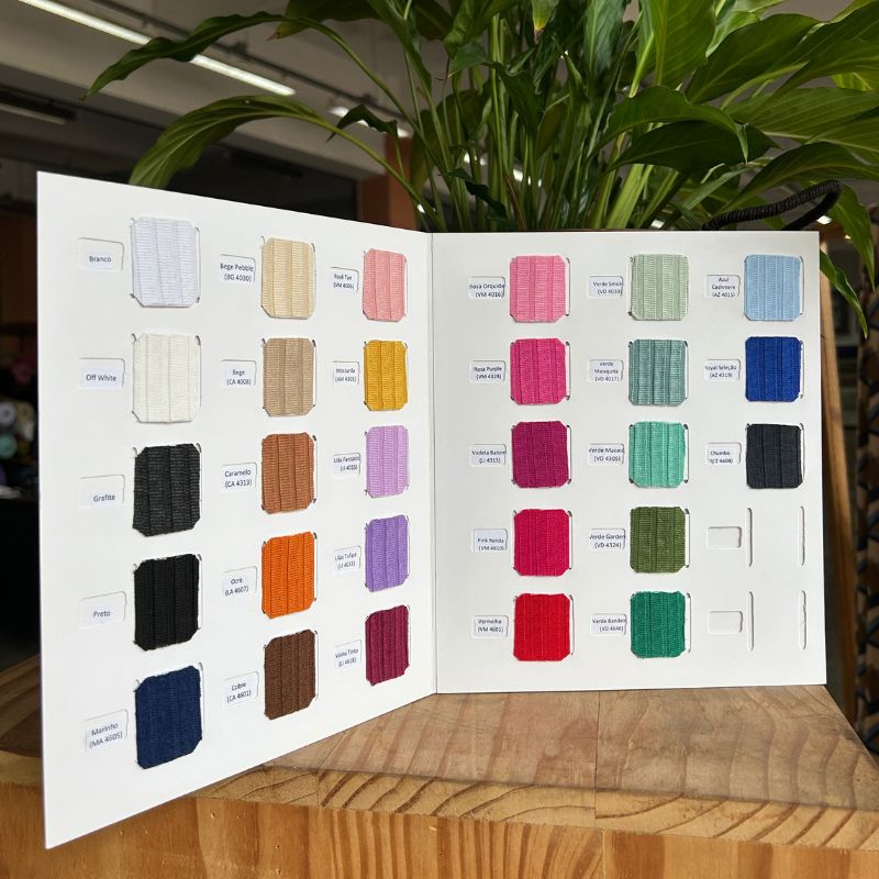 Textura definida e elasticidade equilibrada fazem da Ribana 10×6 uma ótima escolha para cós, punhos e barras, além de modelagens criativas. Disponível em diversas cores, acompanha tendências com flexibilidade.